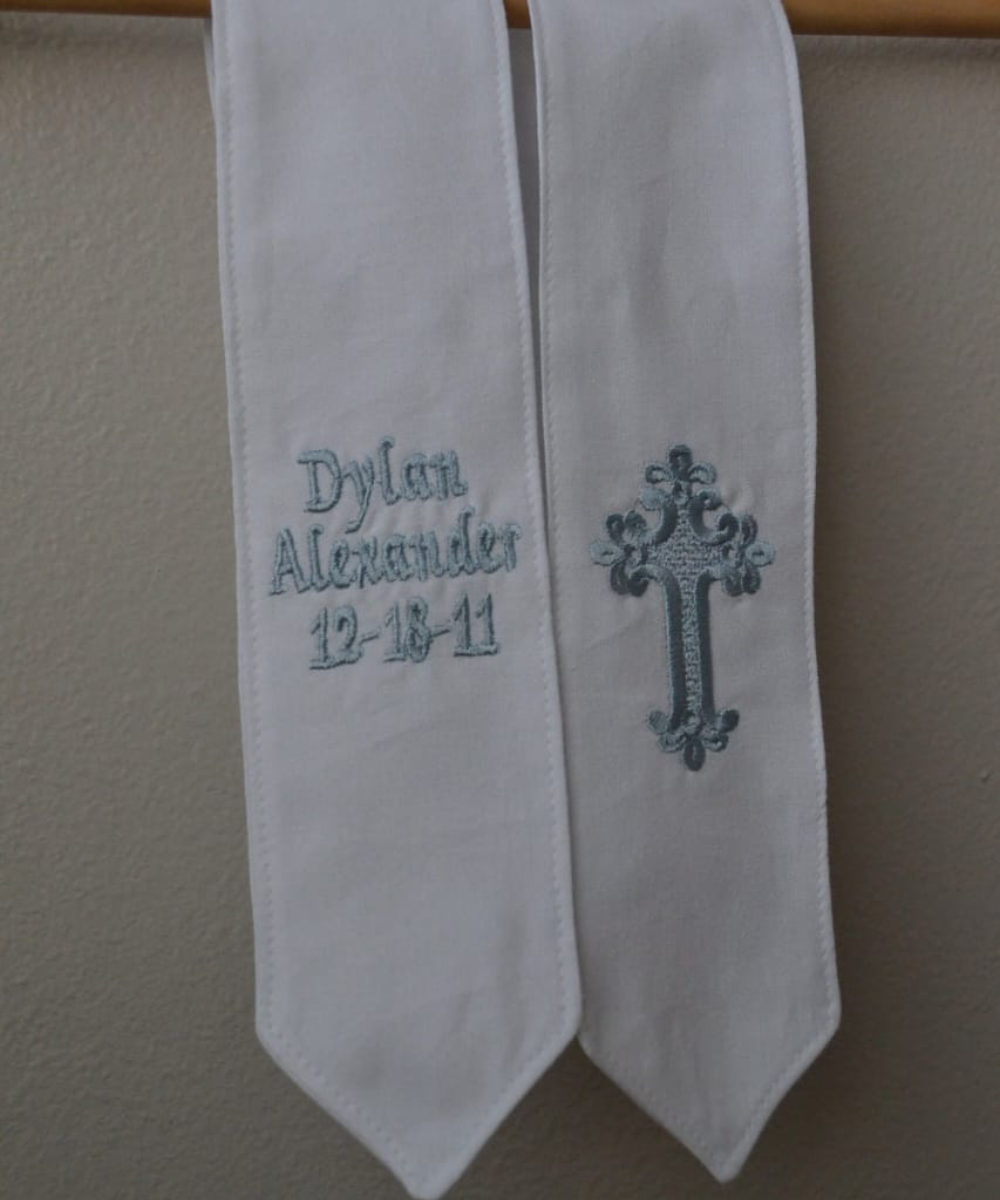 Celebrate a sacred moment with the Handcrafted Embroidered Baptism Stole, where artistry and spirituality come together in perfect harmony.
